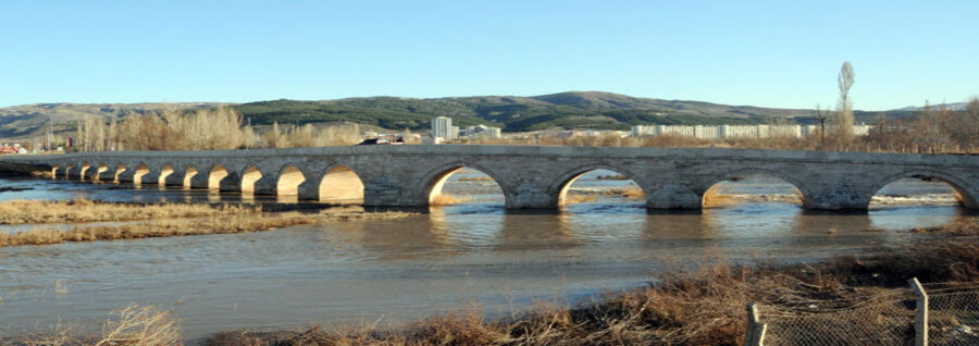 Eski dönemlerde Bağdat (İpek) Yolu'nun üzerindeki Eğri Köprü, yakın zamana kadar Sivas-Malatya yolu ve Güneydoğu Anadolu'nun ulaşımını sağlamıştır. Selçuklu yapısı olan köprü 173 metre uzunluğundadır. Biri 12, öteki 6 olmak üzere iki bölümden oluşmaktadır. Köprü batı yönünde düz bir şekilde devam ederken orta kısımlarda kuzeye doğru eğik olarak kesme taştan inşa edilmiştir.
